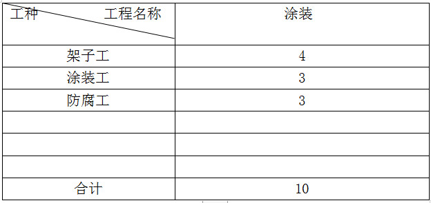 根据工程实际需要,选派多年从事喷涂施工、架子搭设等精干技工,组建相应的作业班组。